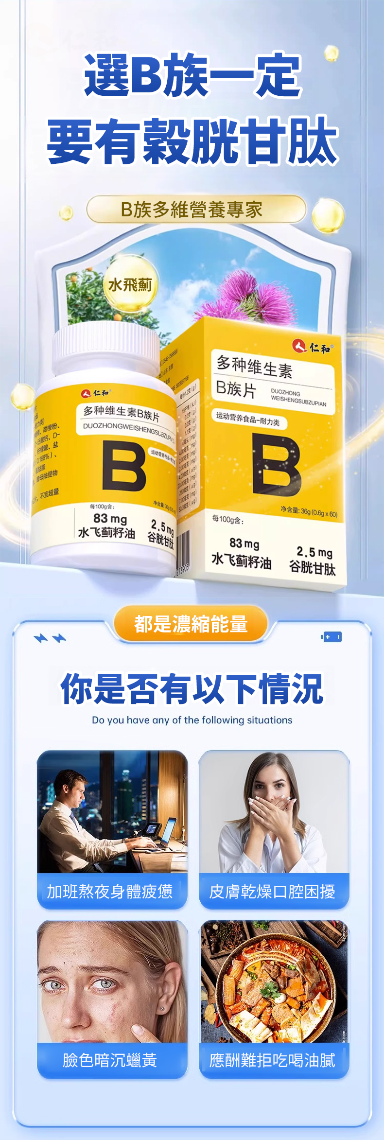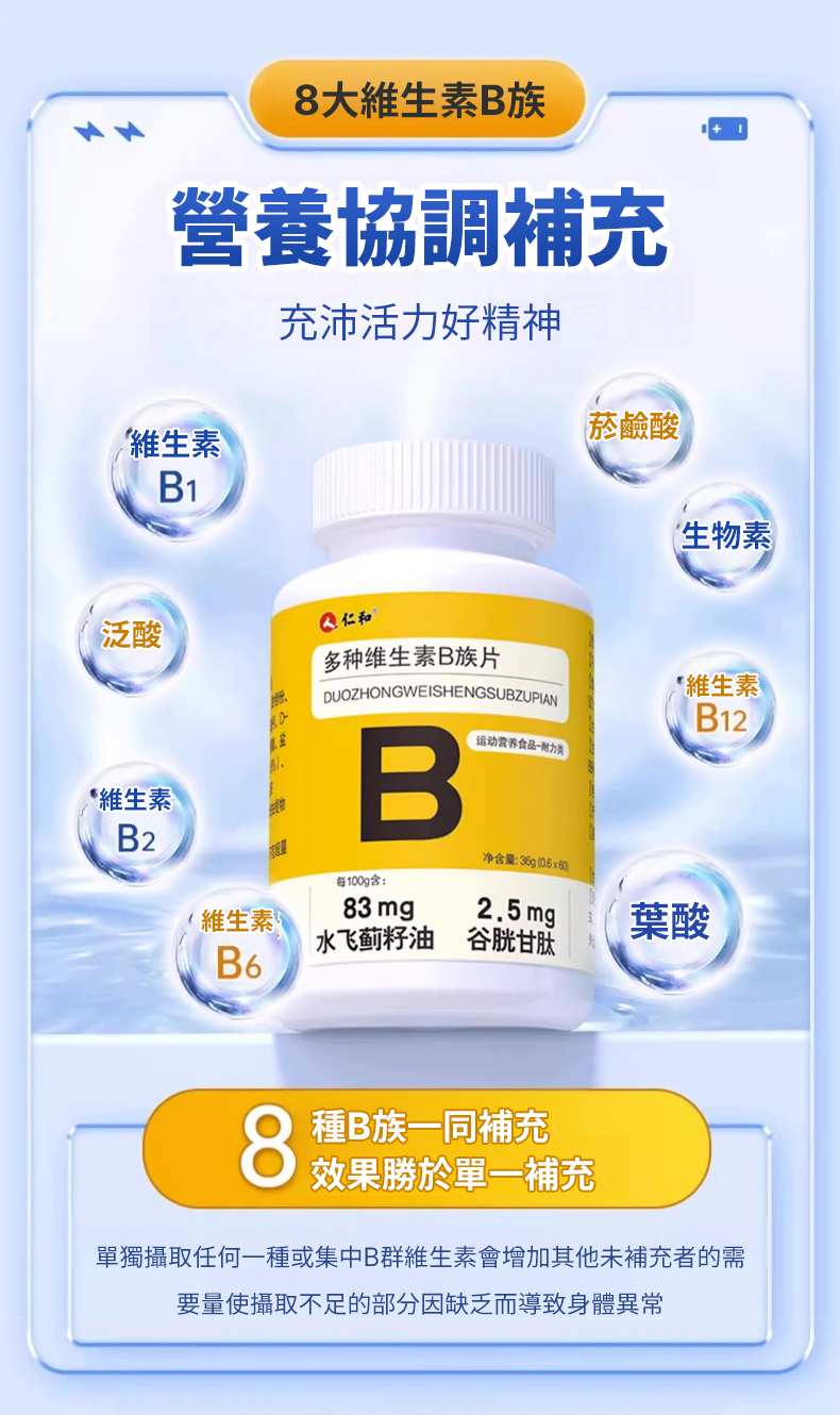 【1=8種維生素】仁和B族片
